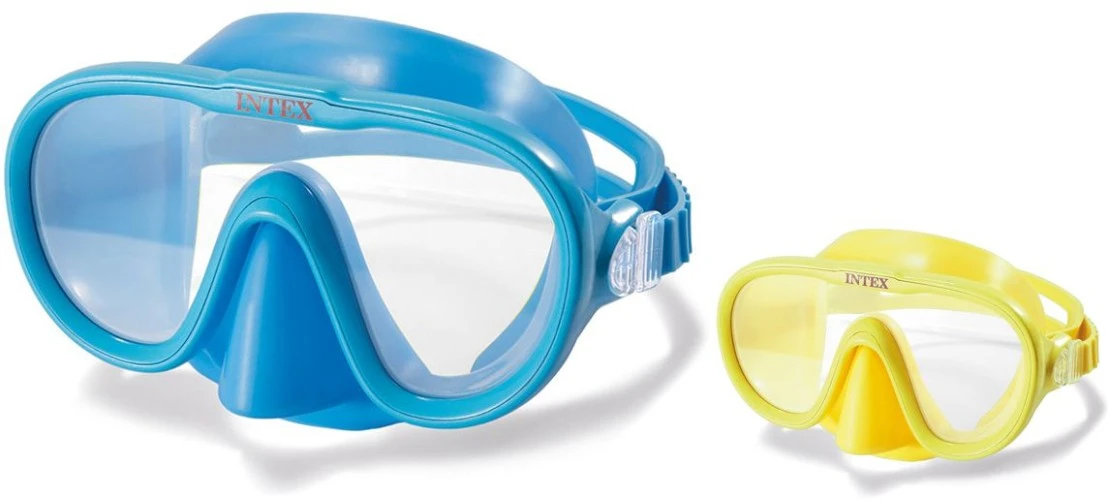 Een duikbril van het merk Intex in de kleur blauw. De bril is geschikt voor een minimale leeftijd van 8 jaar.