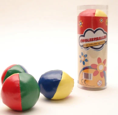 Met deze 3 grote jongleer ballen met ieder een diameter van 6,5 cm is het een kunst om ze omhoog te werpen en weer op te vangen. Elke bal ziet er vrolijk uit door de 4 kleuren en in de bijgeleverde koker kun je de jongleerballen netjes bewaren.