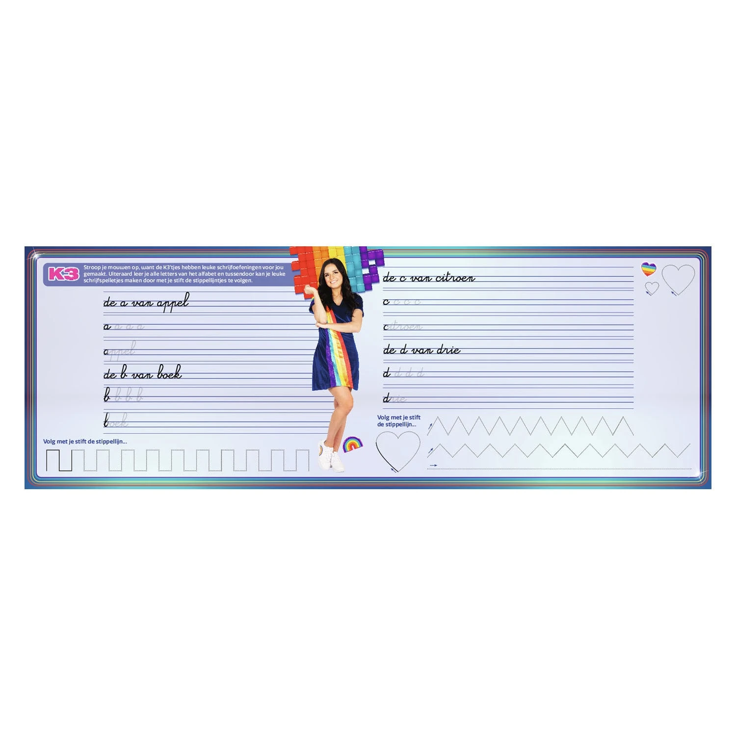 Met dit boek en wat K3 magie leer je op een leuke manier schrijven. Schrijfoefeningen waren nog nooit zo leuk! En lukt het eens een keertje niet zo goed? Geen nood! Wissen en opnieuw beginnen!