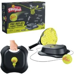 Mookie Reflex Tennis Prois de ideale tennistrainer die je helpt je vaardigheden te verbeteren zonder dat je een net, baan of zelfs een partner nodig hebt! Met een echte tennisbal en de geweldige Power Padel Bat: de eerste Swingball bat die het gevoel en de prestaties van een echt tennisracket nabootst! Een stevige, slipvaste basis en touw dat niet in de knoop kan raken zorgen ervoor dat je urenlang kunt oefenen om je vaardigheden te perfectioneren. De Swingball Pro Reflex Tennis Trainer is het perfecte hulpmiddel om aan jouw tennisslagen te werken en je snelheid te maximaliseren. Inclusief een verstelbaar touw om het spel te verfijnen. Ook kun je het touw opwinden als de Tennis Trainer niet in gebruik is, om de levensduur te verlengen. Dit spel is perfect is voor zowel kinderen als volwassenen. Sla harder dan ooit tevoren met de Power Padel Bat – met een handgreep met griptape en polskoord. Geschikt voor kinderen vanaf 6 jaar.