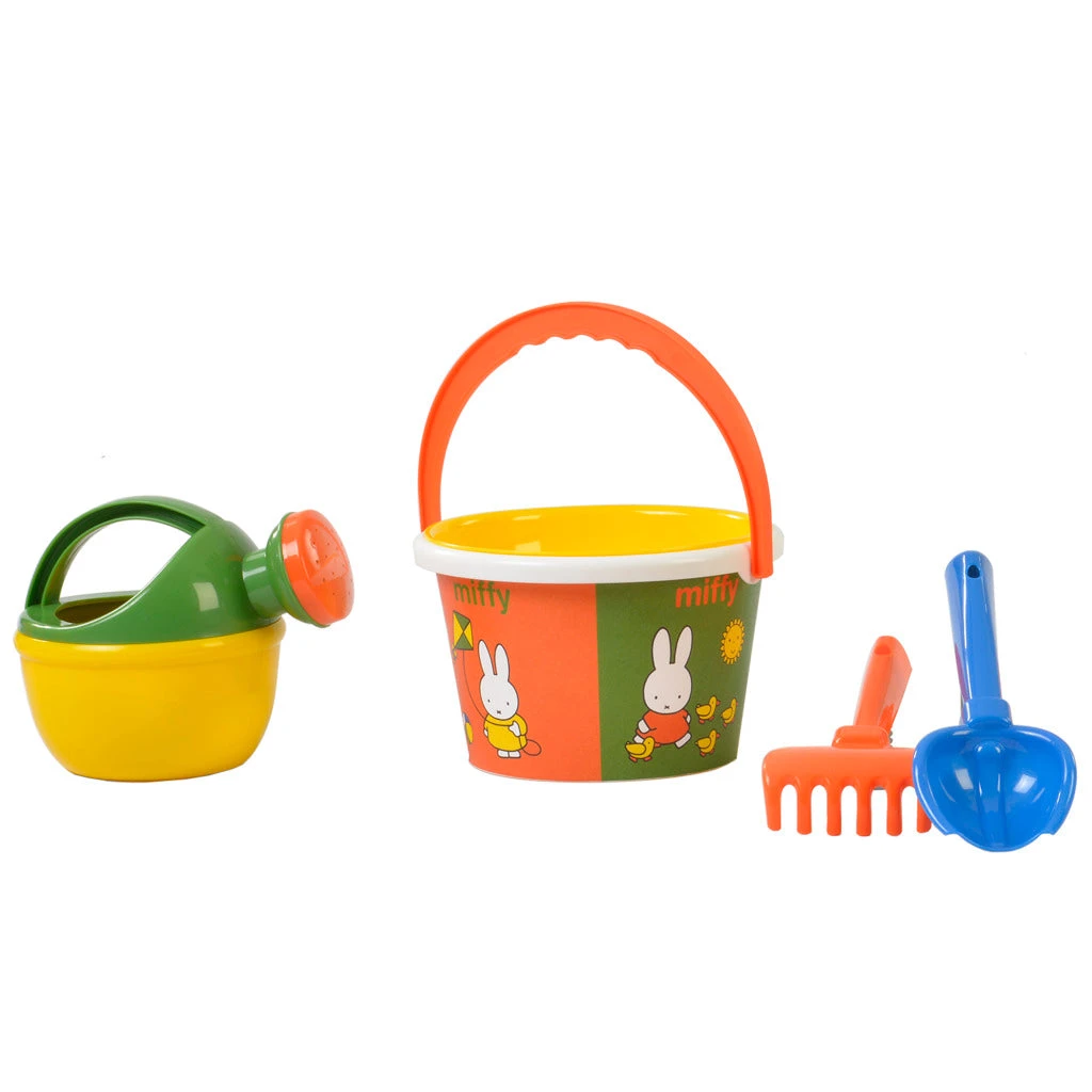 Voor de allerkleinsten onder ons is dit emmertje de uitkomst. Deze emmer is voorzien van alle spulletjes die uw kindje nodig heeft aan het strand: een zeef, gieter, schep en hark. Hoogte: 9,5 cm. Geschikt voor kinderen vanaf 1 jaar.