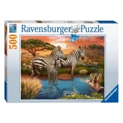 Ontsnap uit de realiteit en stap in de wereld van Ravensburger-puzzels. Deze Ravensburger puzzel van 500 stukjes is de perfecte eerste stap naar de wereld van de grote puzzels. Ideaal ook voor puzzelaars die alleen op zoek zijn naar een puzzel voor tussendoor. Dankzij de met de hand gemaakte stansmessen is de vormvariatie van de stukjes oneindig. Jong en oud zullen genieten van deze Zebra’s bij de drinkplaats puzzel met 500 stukjes.