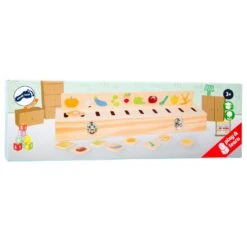 Een muis nodigt je uit voor een ontdekkingsronde! Met deze kleurrijke pluche muis trainen jonge kinderen hun motoriek en trainen ze hun ruimtelijk denken. De verschillende pluche vormen moeten niet alleen in de juiste uitsparingen worden geplaatst – ze fascineren de kleintjes ook met hun piepende, rammelende en knisperende functies. Wanneer baby’s de muis omdraaien, kijken ze naar zichzelf in de spiegel. Een rammelaar bevestigd via een rubberen band met twee ringen zorgt voor nog meer speelplezier. Na het spelen kunnen alle onderdelen in de muis worden opgeborgen. Een heerlijk motorisch speelgoed!